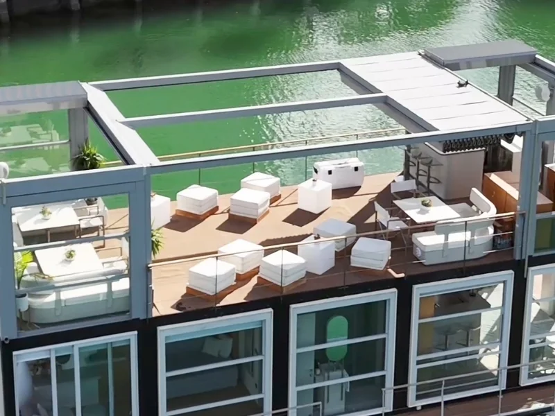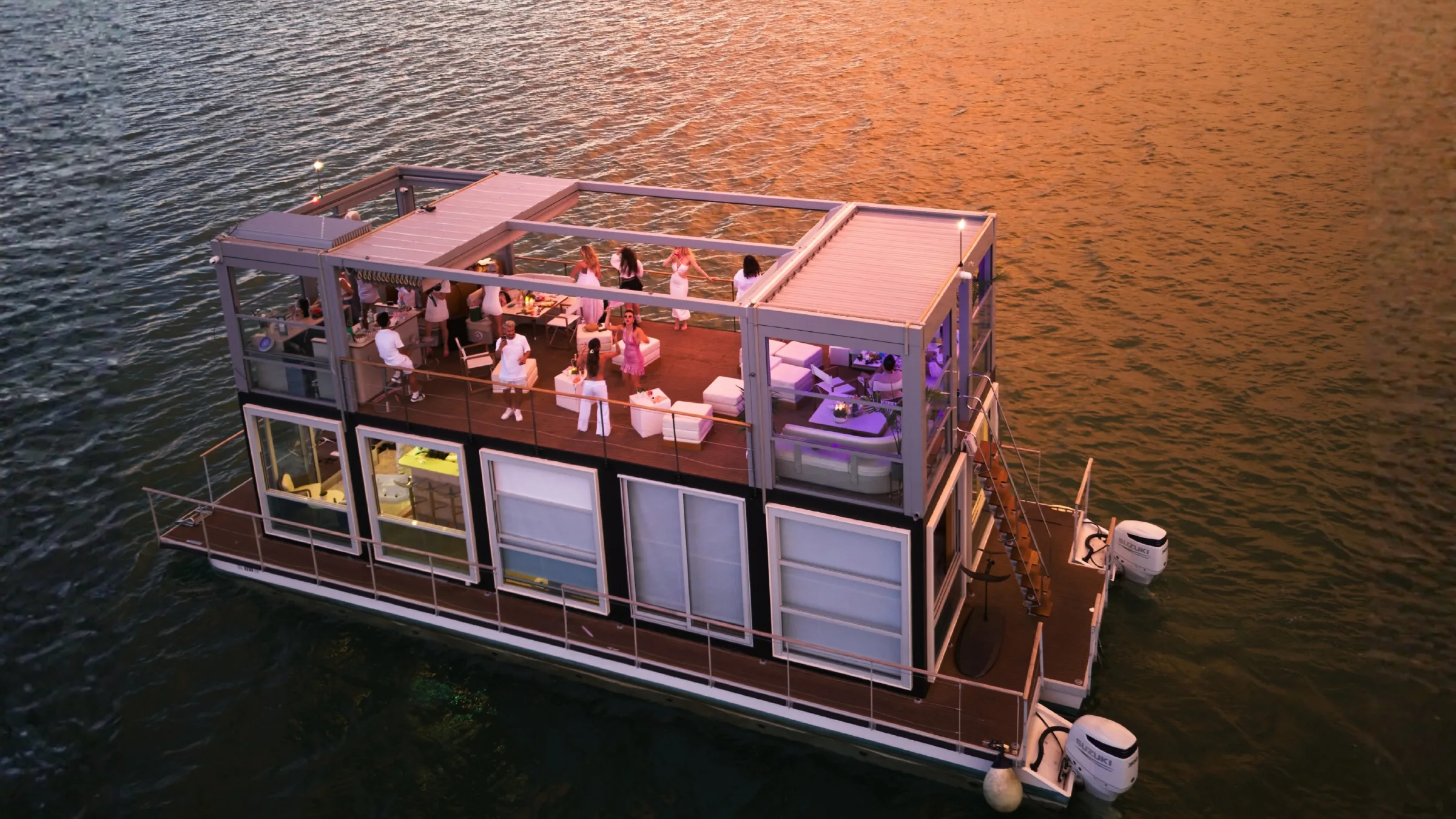 Miami's first floating luxury lounge. Rooftop deck, enclosed bar and lounge below — all of it, on the water.